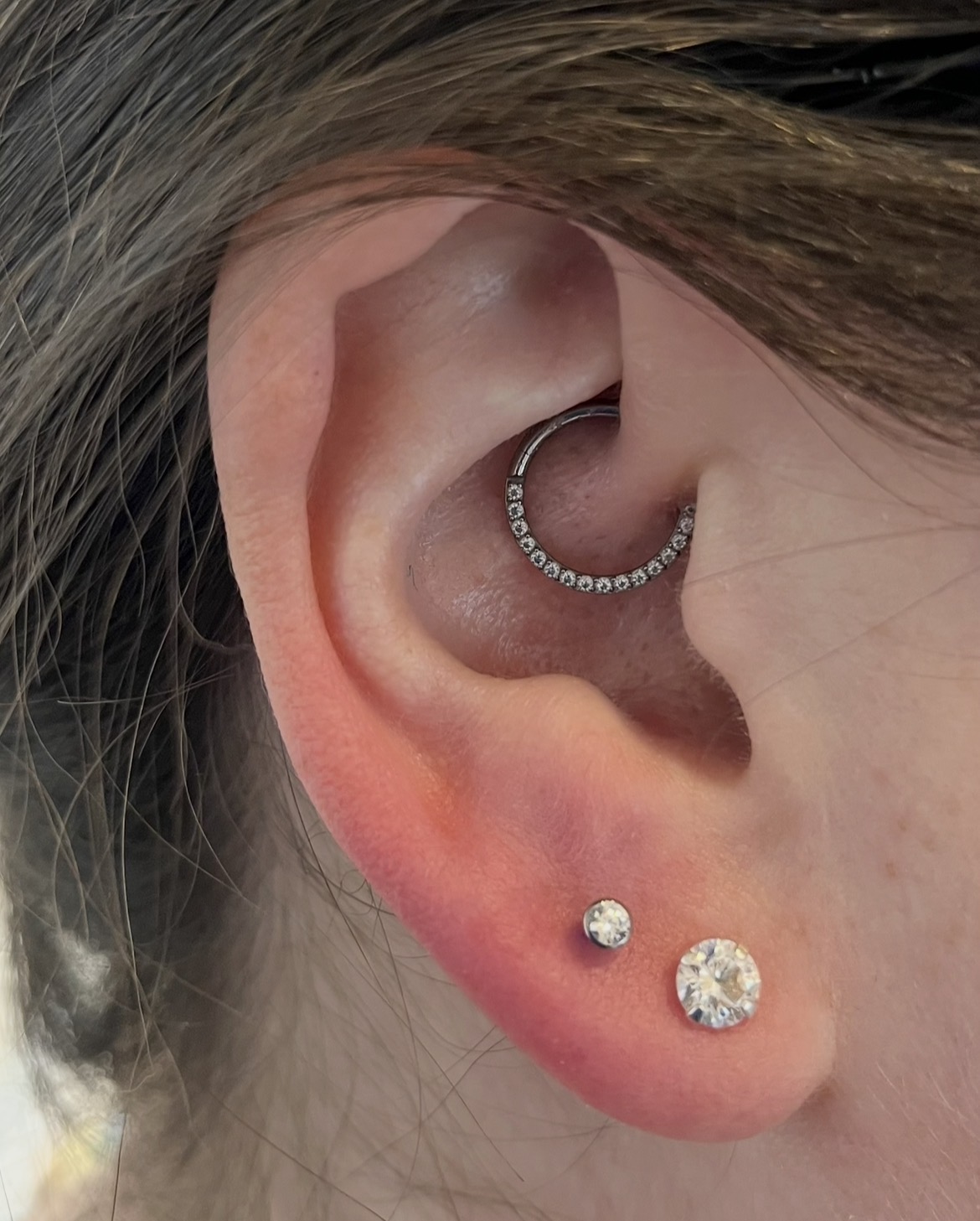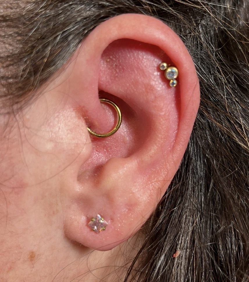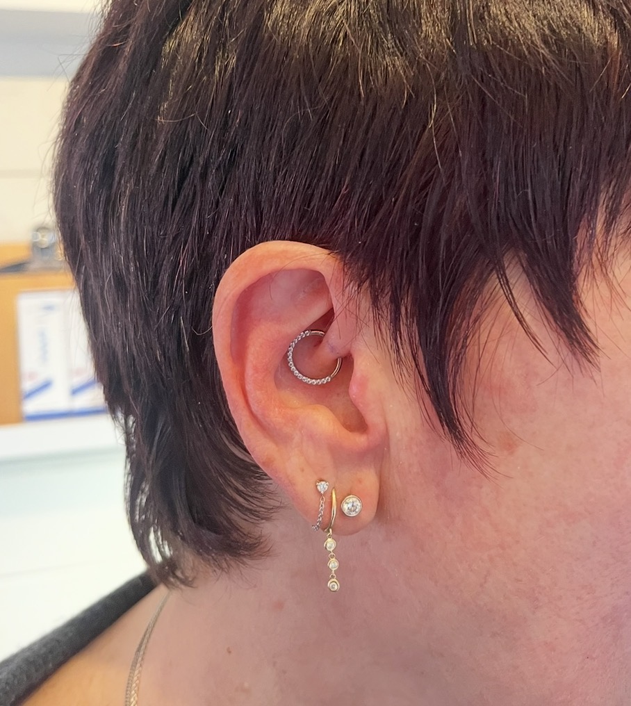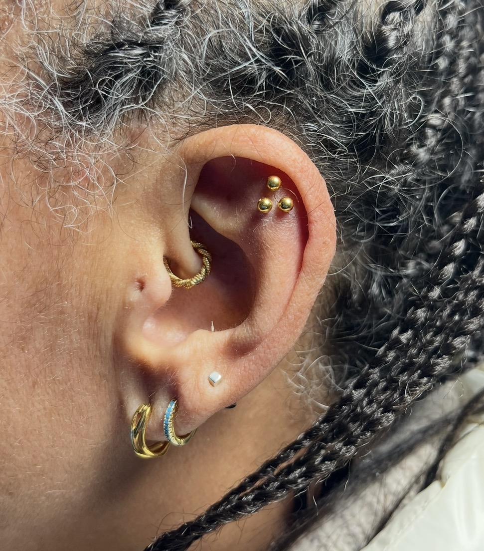 I use implant-grade titanium jewellery and carefully selected attachments so each piercing is both safe and beautifully styled. My approach focuses on personalised ear curation, helping clients create something unique to them.